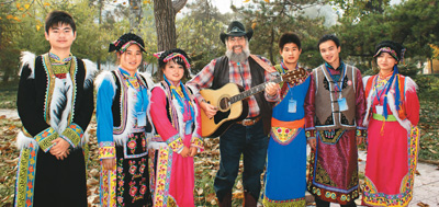 “自由之鐘響起,60年巨變。人民笑開顏,相信共產(chǎn)黨,促使中國向前!北本┏醵奈绾,中央民族大學的家屬區(qū)內(nèi)傳出了悠揚的吉他彈唱聲。典型的美國鄉(xiāng)村音樂曲調(diào),一口純正的美式發(fā)音,但唱的卻是中國農(nóng)民熱愛共產(chǎn)黨的故事。