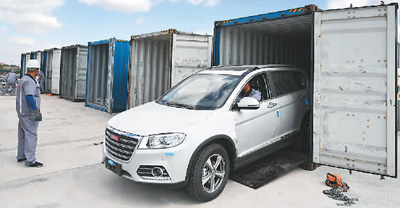 | 6月9日,在吉林省長春國際陸港,工人將車輛裝入貨柜。 |