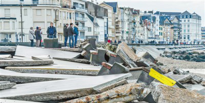 | 1月6日,法國(guó)北部維姆勒鎮(zhèn)的防波堤被“埃莉諾”風(fēng)暴摧毀。新華社發(fā) |