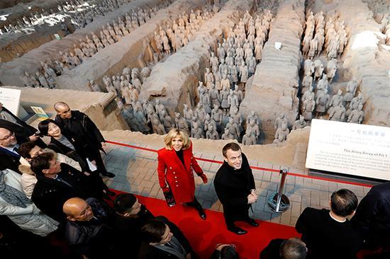 據(jù)他講,馬克龍總統(tǒng)一行,上午在秦始皇帝陵博物院主要參觀了兵馬俑一號(hào)坑、二號(hào)坑。剛到一號(hào)坑,馬克龍總統(tǒng)就對(duì)俑坑的面積和挖掘時(shí)間、兵俑數(shù)量,以及當(dāng)時(shí)是怎么修建的、修建時(shí)用了哪些技術(shù)提了很多問(wèn)題,明顯感覺(jué)他對(duì)中國(guó)古代技術(shù)很感興趣。