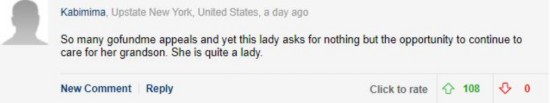 美國(guó)紐約的網(wǎng)友Kabimima:“眾籌平臺(tái)GoFundMe上有各種訴求,而這位女士卻沒(méi)有要求任何東西,只是想要能夠繼續(xù)送她的孫子上學(xué)。她真是了不起。”