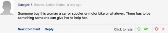 美國(guó)波士頓的網(wǎng)友danigiri17寫(xiě)道:“誰(shuí)來(lái)給她買輛車,或者至少買個(gè)小摩托車之類的?隙ㄓ腥四軌驇椭!