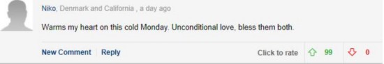 網(wǎng)友Niko:“在這個(gè)冰冷的周一,他們之間無(wú)條件的愛(ài)讓我感覺(jué)到了溫暖。祝福他們!