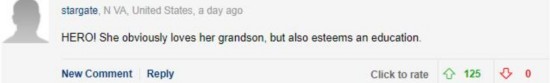 美國(guó)弗吉尼亞州的stargate說(shuō):“她真是個(gè)英雄。她關(guān)愛(ài)自己的孫子,而且了解教育的重要性!保ㄌ祗P)