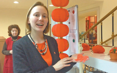 為了更好地傳遞這種信息,文化中心精心策劃了具有本地特色的春節(jié)特別活動。位于莫斯科紅場旁的大型百貨商場“古姆”,是俄羅斯最負盛名的高檔商場,從2月8日起,商場進入了“春節(jié)月”,邀請著名室內(nèi)裝飾大師,巧妙地將中國福娃與俄羅斯套娃、中國喜蛋與俄羅斯彩蛋等中俄節(jié)日文化元素結(jié)合在一起。長廊上,極具中國特色的“紅包”樹掛,讓人流連忘返的精品刺繡展品,充滿中國年味兒的民間藝術糖畫、剪紙,色香味俱全的中國美食,以及商場里循環(huán)播放的“恭喜發(fā)財”中國新年歌,讓中國春節(jié)走進了當?shù)匕傩盏纳钊ΑF穱L中華美食是春節(jié)期間最受外國人歡迎的一個文化活動,但這次玩出了“新花樣”——與俄羅斯總廚協(xié)會合作,舉辦中俄美食之夜,由中俄兩方的廚師團隊采用相同食材做出不同菜品,由媒體記者、美食家和用餐客人共同品鑒。