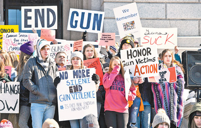 | 2月21日,在美國科羅拉多州丹佛市,眾多師生和民眾聚集在州議會大樓外示威,紀念佛羅里達州校園槍擊案遇難者,呼吁控槍。人民視覺 |