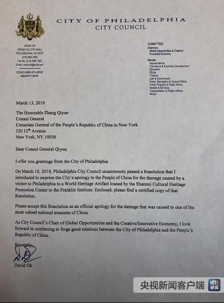 目前,該作案男子被逮捕后保釋,正在等待法庭的審判,面臨最高可達(dá)有期徒刑30年的判決。而另一方面,費(fèi)城市政府在日前通過(guò)了一份決議,正式向中方進(jìn)行書面道歉。