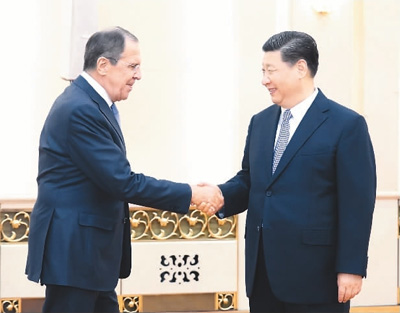 國家主席習近平23日在人民大會堂會見俄羅斯外長拉夫羅夫。