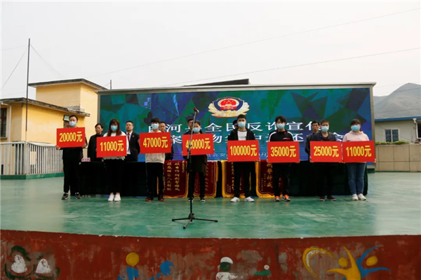 4月13日上午,白河縣“全民反詐”宣傳暨涉案財物集中返還大會在縣體育場舉行?h委常委、政法委書記余盛武,縣政府副縣長、公安局黨委書記、局長譚簡出席活動。縣委政法委、縣法院、縣檢察院、縣司法局、城關(guān)鎮(zhèn)政府有關(guān)領(lǐng)導(dǎo),城關(guān)鎮(zhèn)清風(fēng)社區(qū)、橋兒溝社區(qū)、獅子山社區(qū)、河街社區(qū)的工作人員及群眾代表,公安干警等200余人參加了活動,白河縣公安局近期破案并追回的60余萬元涉案現(xiàn)金現(xiàn)場返還給受害群眾。