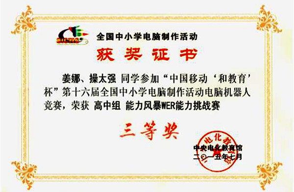 “中國移動‘和教育’杯”第十六屆全國中小學(xué)電腦制作活動結(jié)果日前揭曉,白河高級中學(xué)學(xué)生姜娜和操太強在高中組能力風(fēng)暴WER能力挑戰(zhàn)賽——&……