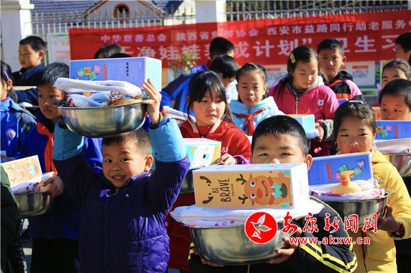 11月25日上午,由中華慈善總會、陜西省慈善協(xié)會發(fā)起,西安市益路同行助老服務(wù)中心和漢濱區(qū)浩睿社會組織服務(wù)中心聯(lián)合執(zhí)行的“干凈娃娃養(yǎng)成計(jì)劃”項(xiàng)目在安康市漢濱區(qū)紫荊鎮(zhèn)紫荊小學(xué)、紫荊幼兒園等7所學(xué)校共計(jì)發(fā)放680套“衛(wèi)生習(xí)慣養(yǎng)成包”。(吳燁卿 攝)eZk安康新聞網(wǎng)