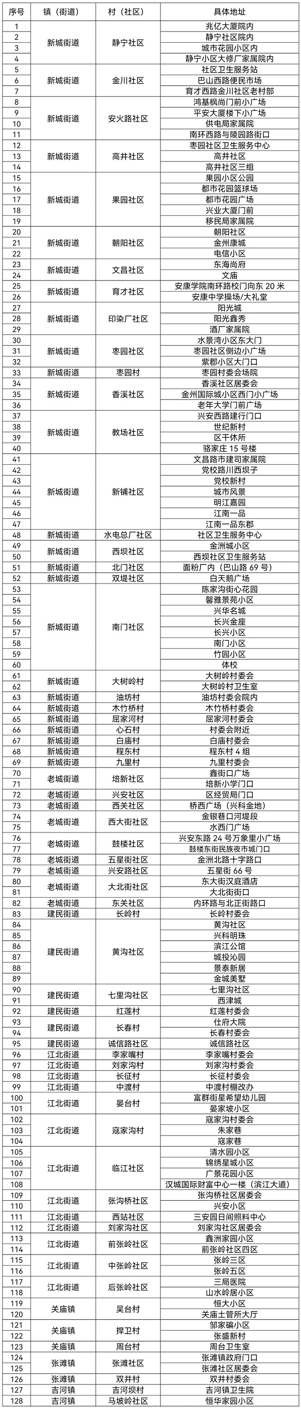 附件:漢濱區(qū)中心城區(qū)全員核酸檢測采樣點一覽表
