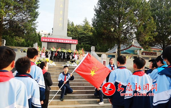 活動(dòng)中,來自學(xué)生會(huì)和小記者社團(tuán)的八十名少先隊(duì)員在輔導(dǎo)員老師的帶領(lǐng)下,手捧親手制作的小白花,懷著沉痛的心情,徒步來到安康市烈士陵園紀(jì)念碑前。在烈士陵園內(nèi),少先隊(duì)員們參觀了革命烈士的墓地和紀(jì)念碑,認(rèn)真觀看了烈士的事跡介紹和紀(jì)念碑上的銘文,緬懷先烈的豐功偉績,深刻感受到了革命先烈的偉大和無私。Gjp安康新聞網(wǎng)