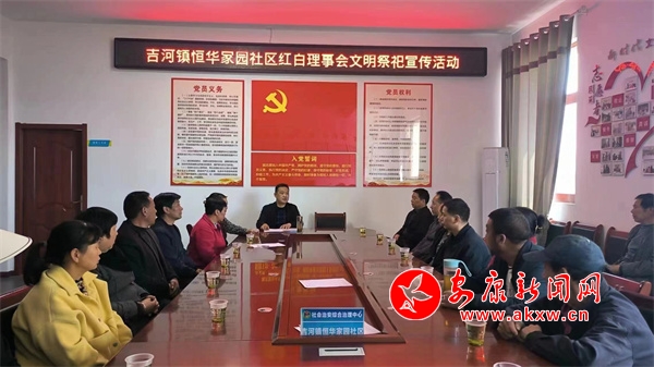 “清明節(jié)是祭奠先人、緬懷逝者、寄托哀思的日子,我們要抓住這個(gè)重點(diǎn)時(shí)間節(jié)點(diǎn),通過(guò)持續(xù)的宣傳引導(dǎo)和政策解讀,推動(dòng)移風(fēng)易俗、文明祭掃理念深入人心。”理事會(huì)組織社區(qū)干部、部分黨員群眾代表學(xué)習(xí)了《紅白理事會(huì)章程》,宣讀了《2024年清明節(jié)文明祭掃倡議書(shū)》,安排部署了當(dāng)前森林防火工作,號(hào)召大家遵守社會(huì)公德,用綠色、健康、簡(jiǎn)約的祭掃方式表達(dá)對(duì)逝去親人的思念之情,減少集中出行發(fā)生交通堵塞、焚燒紙錢(qián)造成火災(zāi)隱患情況發(fā)生。