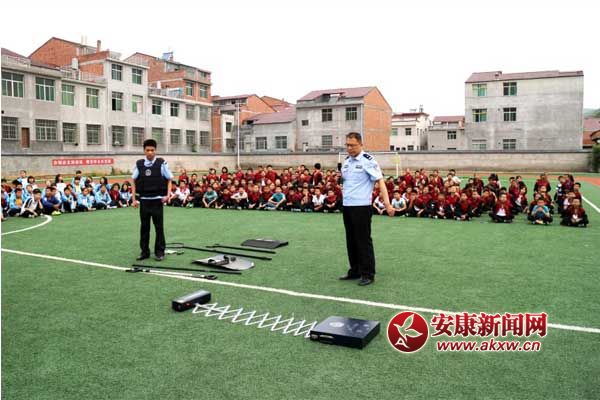 在活動(dòng)過(guò)程中,該所副所長(zhǎng)陳小兵先進(jìn)行了法律知識(shí)講座。講座中,陳所長(zhǎng)針對(duì)青少年犯罪的性質(zhì)、特點(diǎn)、根源,結(jié)合青少年的生理、心理特征,以生動(dòng)的事例,詳實(shí)的資料,通俗的語(yǔ)言,解讀了一個(gè)個(gè)觸目驚心的青少年犯罪案例,給學(xué)生上了一堂生動(dòng)的法制教育課。緊接著公安民警又向師生們展示了催淚噴射器、警棍、鋼叉、阻車(chē)器等警用裝備并模擬在遇到壞人時(shí)應(yīng)如何正確使用這些警用裝備以便最迅速、有效地將壞人制服,師生們聽(tīng)得聚精會(huì)神,博得了師生的陣陣掌聲!