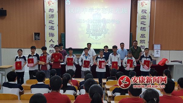 安康新聞網(wǎng)訊(通訊員 涂紅蓮)6月20日下午兩點(diǎn),漢陰中學(xué)首屆“衣戀陽光班”2016-2017學(xué)年助學(xué)金發(fā)放儀式在該校階梯教室隆重舉行。市縣慈善協(xié)會(huì)、縣教體局、漢陰中學(xué)相關(guān)領(lǐng)導(dǎo)出席,50名品學(xué)兼優(yōu)的受助貧困學(xué)生參加發(fā)放儀式。