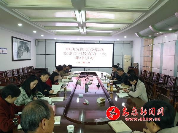 本網(wǎng)訊(通訊員 陳緒艷)3月22日上午,漢陰縣委編辦召開黨史學(xué)習(xí)教育動(dòng)員會(huì)議,學(xué)習(xí)貫徹中、省、市、縣黨史學(xué)習(xí)教育動(dòng)員大會(huì)精神,安排部署黨史學(xué)習(xí)教育工作,就習(xí)近平總書記《論中國共產(chǎn)黨歷史》相關(guān)篇目開展了第一次集中學(xué)習(xí)。HHJ安康新聞網(wǎng)