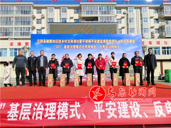 本網(wǎng)訊(通訊員 歐定揚 鄧麗 張成軍)12月2日,漢陰縣舉行衛(wèi)生健康知識宣講和文藝巡演進鄉(xiāng)村暨平梁鎮(zhèn)321基層治理模式優(yōu)秀網(wǎng)格長、優(yōu)秀綜治網(wǎng)格員表彰大會。普及衛(wèi)生健康知識,全面提升城鄉(xiāng)廣大人民群眾的健康水平