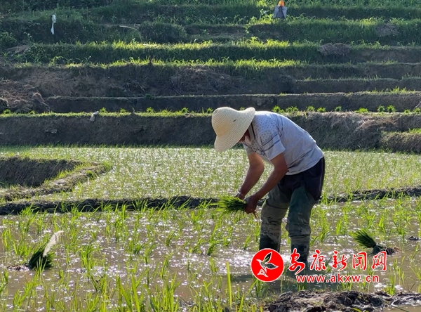 放眼望去,層層梯田披上了一襲綠色的新裝,微風(fēng)吹過,秧苗輕輕搖擺,蕩漾起無限生機。在持續(xù)兩周的插秧期,村民們每天從早上六點一直忙到下午七點鐘才收工,“手把青秧插滿田”的農(nóng)忙景象與大大小小形狀各異的水田,構(gòu)成一幅詩意盎然的田園風(fēng)光圖。