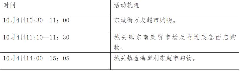 密切接觸者14,卜某某,男,18歲,10月4日被集中隔離,已于10月3日、4日核酸檢測(cè),結(jié)果均為陰性。