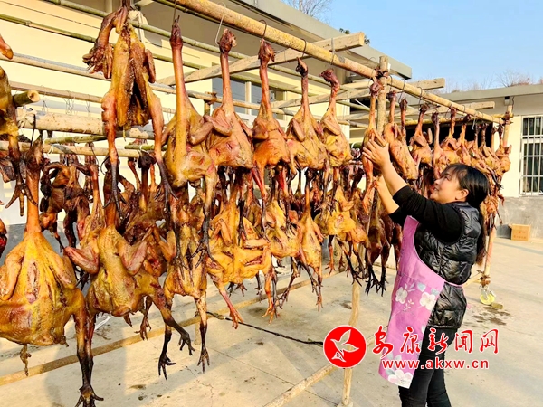 “市場反應(yīng)非常好,產(chǎn)品供不應(yīng)求。今年冬月以來,我們早做準備,擴大生產(chǎn)規(guī)模,修建了臘雞生產(chǎn)車間,引進了烘干設(shè)備,計劃生產(chǎn)臘雞5000只,預(yù)計銷售額將達到80萬元。”共同村經(jīng)濟合作社負責(zé)人章漢說。
