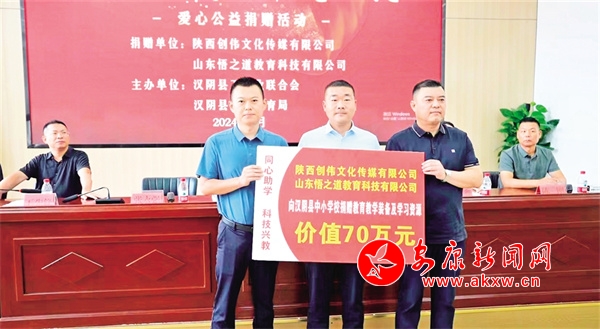 活動(dòng)中,陜西創(chuàng)偉文化傳媒有限公司與山東悟之道教育科技有限公司聯(lián)合向漢陰縣26所中小學(xué)捐贈(zèng)了教學(xué)無(wú)人機(jī)、電鋼琴、教師護(hù)頸按摩枕等價(jià)值70萬(wàn)元的教育教學(xué)設(shè)備和學(xué)習(xí)資源,助力當(dāng)?shù)亟逃聵I(yè)發(fā)展。