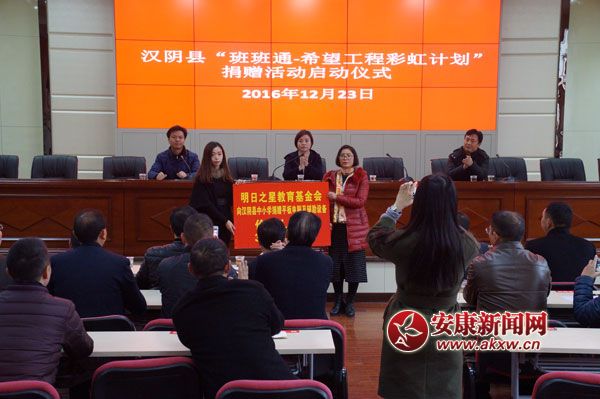 安康新聞網(wǎng)訊(通訊員 劉擁軍)12月23日,漢陰縣2016年“班班通——希望工程彩虹計(jì)劃”捐贈(zèng)活動(dòng)啟動(dòng)儀式在城關(guān)一小舉行,漢陰團(tuán)縣委、教體局、明日之……