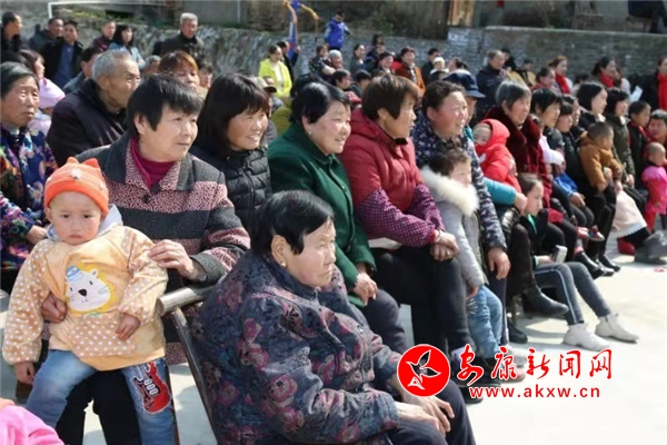 這場"幸福都是奮斗出來的"新民風文藝演出在唐灣村"百姓大舞臺"拉開帷幕,節(jié)目舞蹈《開門紅》《祝福祖國》《幸福安康》;眉戶劇《梁秋燕》;快板《說唱安康新民風》;小品《豬八戒背媳婦》《幸福一家人》;小戲《黃四姐》;表演唱《大家喜歡》《逛唐灣》《五只小船》《龍船調》;二人轉《小拜年》;黃梅戲《夫妻觀燈》;道情《毛驢》等深受群眾喜愛,節(jié)目精彩紛呈,現場處處洋溢著歡樂祥和的氣氛,給觀看演出村民帶來了一場視聽盛宴。村民唐志海說:"我在漢中創(chuàng)業(yè)多年,今天觀看了這場勵志文藝演出,節(jié)目實惠、通俗易懂、很接地氣"。村黨支部書記唐志亮說:"唐灣村是全市第一年已脫貧村,通過黨建引領新民風建設,大力弘揚誠、孝、儉、勤、和,遵紀守法、精神文明建設,精準扶貧工作著力扶貧扶志、美麗生態(tài)鄉(xiāng)村、族規(guī)家訓、經濟發(fā)展等讓村民的幸福指數不斷提升,日子越過越紅火"。八十五歲高齡退休教師唐祖勝說:"過去村里逢年過節(jié)放電影、玩彩船、耍火龍,文化生活豐富的很?稍谧罱鼛啄晡幕麄骰顒由倭耍e人聚在一起就是打牌賭博,讓農村社會風氣變了樣,今年政府倡導禁止煙花爆竹燃放,所以百姓大舞臺文藝演出便成了一種新時尚。.