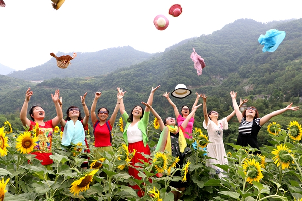 葵花競相開放,吸引眾多游客前往,一睹美景。據(jù)嵐皋縣城關鎮(zhèn)茅坪村支書陳世貴介紹,自開展精準脫貧工作以來,茅坪村因戶施策,為10戶貧困戶流轉(zhuǎn)土地100畝種植油葵,預計每畝收益可達到2400元,并計劃從明年起,再將其打造成農(nóng)業(yè)觀光旅游項目,屆時,葵花園的收益將大幅提高。wiM安康新聞網(wǎng)