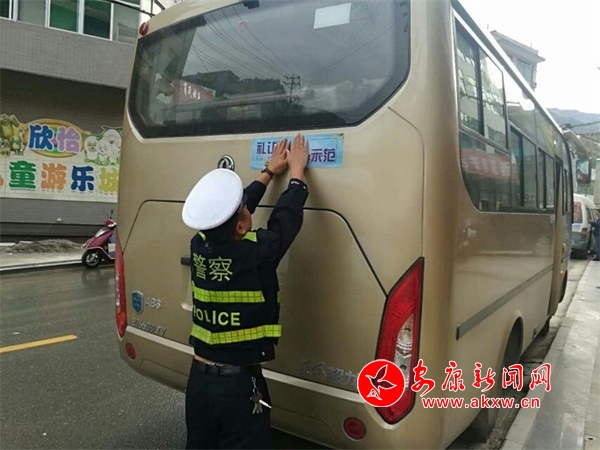 安康新聞網(wǎng)訊(通訊員 翁玲 張栓) 為加強(qiáng)道路交通安全管理工作的宣傳力度,營造濃厚的文明交通宣傳氛圍, 10月8日上午,嵐皋縣公安局交警大隊(duì)利用日常執(zhí)勤和開展交通安全宣傳活動(dòng)的機(jī)會(huì),在重點(diǎn)車輛上粘貼交通安全標(biāo)語車貼,進(jìn)行文明交通安全宣傳,為每一輛車“烙”上文明之印。