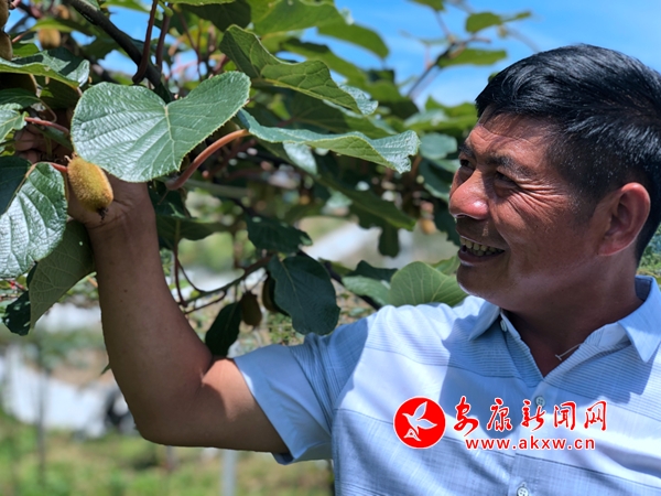 “今年是首次掛果,產(chǎn)量不大,3萬斤左右,預(yù)計帶來直接收益30余萬元”。邱文均一邊修剪長勢不好的果子,一邊介紹說。“獼猴桃專家說了,頭一年掛果,不能貪心,必須放棄殘次品,成長期的果樹才能專心供給養(yǎng)分,養(yǎng)出質(zhì)量上乘的果子”。談起獼猴桃管護(hù),邱文均儼然已成為了農(nóng)技專家。