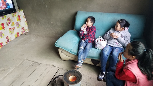 中秋,山里冷嗖嗖的。雨越下越緊。河風順著山谷在看不見地吹,鉆進衣袖、褲管。溝里,洪水在翻騰。這里是嵐皋縣孟石嶺鎮(zhèn)風景村。小心翼翼走過一道木橋,再走一段……