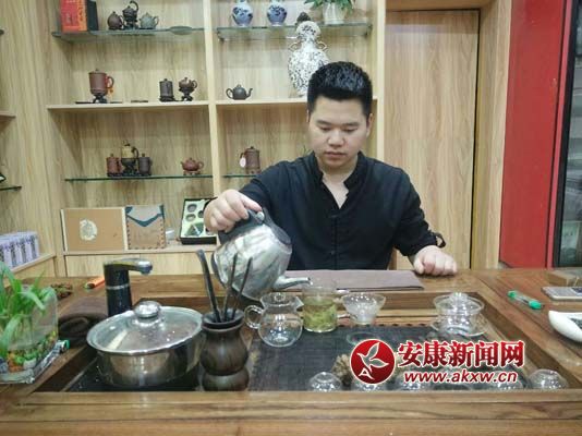 安康新聞網(wǎng)訊(通訊員 廖霖)茶香四溢,意蘊(yùn)悠遠(yuǎn)。木質(zhì)桌椅,精致的茶具,舒適的環(huán)境,古色古香的裝潢。手腕一停一放之間,橙黃帶綠的水柱注入杯子,陜南巴山綠茶……