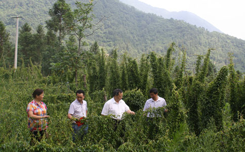 右一為“山藥王”胡大春。嵐皋縣政協(xié)、滔河鎮(zhèn)包掛干部正在和胡大春探討山藥種植技術(shù)。安康新聞網(wǎng)訊 (通訊員 于初林 張昊)盛夏,走進(jìn)嵐皋縣滔河鎮(zhèn),漫山遍野的泡……