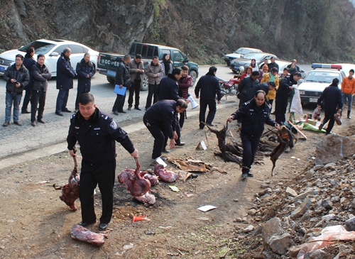 1月29日,嵐皋縣召開銷毀收繳野生動物產(chǎn)品現(xiàn)場會,依法公開銷毀一批收繳的野生動物產(chǎn)品和獵捕工具?h工商、食品、畜牧等部門負(fù)責(zé)人對銷毀活動進行全程監(jiān)督,確!