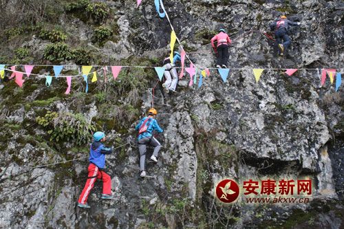 安康新網(wǎng)訊 (實習(xí)記者 羅紀(jì)旬 通訊員 張昊 王湘)4月27日,嵐皋舉行南宮山首屆飛拉達(dá)攀巖公開賽,來自省內(nèi)的16支戶外極限運動團隊在南宮山上,激烈角逐,挑戰(zhàn)極限……