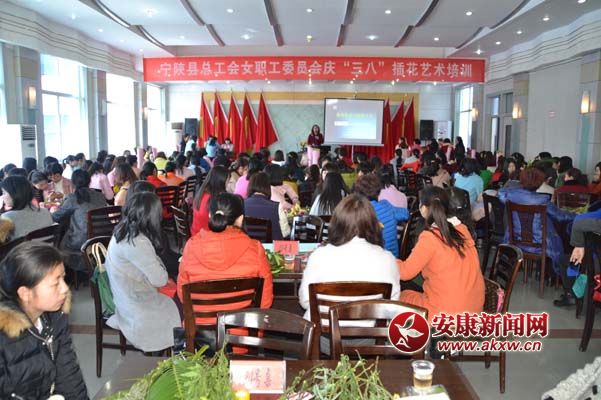 安康新聞網(wǎng)訊(通訊員 楊卓 羅有濤)3月3日下午,寧陜縣花園賓館會(huì)議室內(nèi)被五顏六色的鮮花包圍著,在一片芳香四溢、嬌巧迷人的花海中,來自寧陜87個(gè)單位200多位女職工參加了由縣總工會(huì)舉辦的插花藝術(shù)培訓(xùn)活動(dòng),慶祝即將到來的“三八”婦女節(jié)。