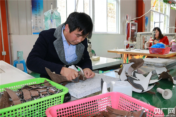 黃章友在社區(qū)工廠上班(央廣網記者 舒隆煥 攝)