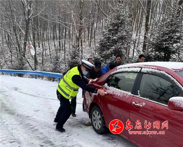 救援期間,執(zhí)勤民警、輔警冒著嚴(yán)寒,克服困難,一邊救援一邊引導(dǎo)過往車輛及時(shí)避險(xiǎn)、安全行駛,有效防止了二次事故的發(fā)生。在疏通出安全道路后,又與公路段養(yǎng)護(hù)工作人員向被困車輛鋪灑防滑沙,歷時(shí)4個(gè)多小時(shí)的救援,被困擁堵車輛全部救援成功。臨行前,車輛駕駛員對(duì)大家的及時(shí)援助一再表示由衷的感謝,執(zhí)勤民警再次叮囑駕駛員一定要減速慢行,謹(jǐn)慎駕駛,加強(qiáng)道路交通安全防范意識(shí),面對(duì)雨雪惡劣天氣,一定要提前備好防滑鏈,切勿存在僥幸心理。