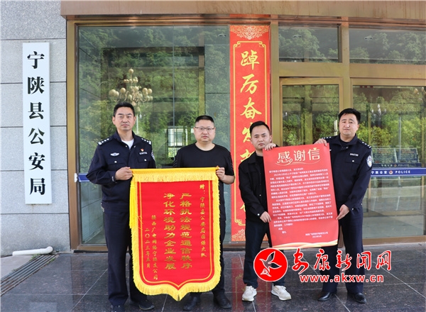 5月17日上午,陜西廣電網(wǎng)絡(luò)寧陜縣支公司負(fù)責(zé)人將一面印有“凈化環(huán)境助力企業(yè)發(fā)展 嚴(yán)格執(zhí)法規(guī)范通信秩序”的錦旗送到寧陜縣公安局,對(duì)民警主動(dòng)作為、積極為企業(yè)排憂解難、守護(hù)企業(yè)安全有序的辛苦付出表示感謝。