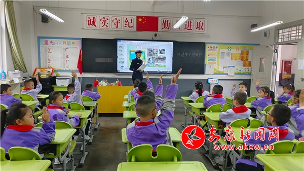 最后,宣傳民警鼓勵(lì)學(xué)生“交通安全、從我做起”,從小養(yǎng)成遵守交規(guī)、文明出行的良好習(xí)慣。把學(xué)到的交通安全知識(shí)帶回家,發(fā)揮“小手拉大手”的紐帶作用,當(dāng)好交通安全的宣傳員和監(jiān)督員,監(jiān)督家長(zhǎng)遵守交通法規(guī),共同維護(hù)道路交通秩序,做到安全文明出行。