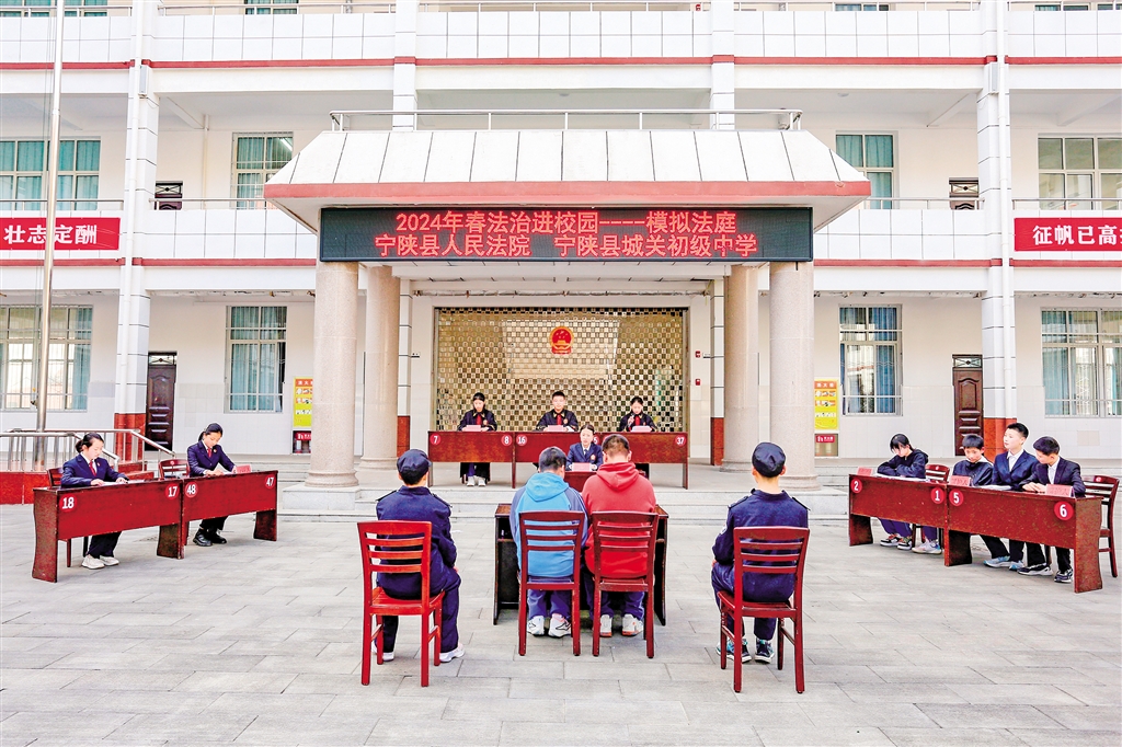 3月20日,寧陜法院與寧陜縣城關(guān)初級(jí)中學(xué)聯(lián)合開(kāi)展“模擬法庭進(jìn)校園”活動(dòng),模擬開(kāi)庭審理一起涉未成年人盜竊案件,給學(xué)生們帶來(lái)“沉浸式”法治體驗(yàn),上了一場(chǎng)記憶深刻的“法治公開(kāi)課”。