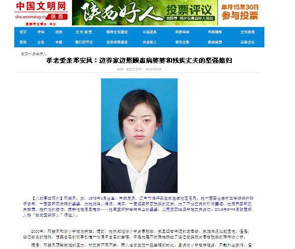 安康新聞網(wǎng)訊(通訊員 龐浩)5月9日,陜西文明網(wǎng)專欄講述了寧陜縣筒車灣鎮(zhèn)七里村外嫁女鄧安鳳的感人事跡,日前,她被評(píng)為“中國(guó)好人”“全國(guó)孝親敬老之星&r……