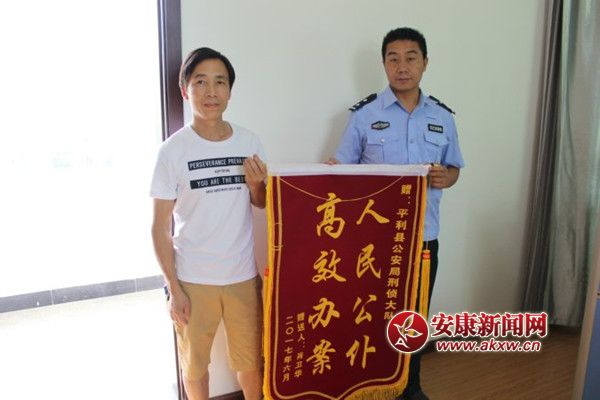 6月26日,肖某將一面印有“人民公仆 高效辦案”的錦旗送到民警手中,對民警主動工作,快速破案,及時為其挽回經濟損失表示感謝。