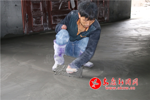 安康新聞網(wǎng)訊(通訊員 陳金山)初見鄒道兵,正在給雇主房屋地面做水磨石,只見他將右手手腕用線繩緊緊的拴在機(jī)器上掌握平衡,用僅有大拇指的左手熟練地操控著機(jī)器運(yùn)轉(zhuǎn)。若非親眼所見,沒有誰會相信,眼前這一套套經(jīng)過鋪墊、打磨、打蠟而變成平滑如玉的水磨石,竟然出自一位獨(dú)指殘疾人之手。