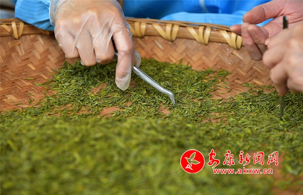 在精選車間,工人們熟練的挑選著茶葉,沖飲的成品茶都是一根根精挑細(xì)選出來(lái)的,每斤成品茶有上萬(wàn)顆芽葉。