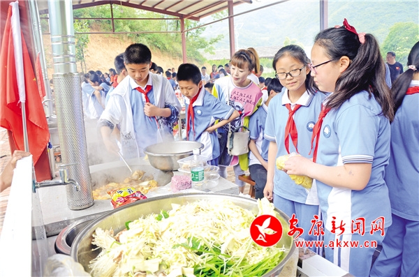 一草一木是記憶,一山一水皆含情。野營拓展課程是整個(gè)研學(xué)旅行的核心和精品,讓學(xué)生們親近自然風(fēng)物,感知熟悉泥土的芬芳和厚重。課程營地集野炊、農(nóng)事體驗(yàn)、野營體驗(yàn)、手工制作、森林探險(xiǎn)于一體,設(shè)有炊煙裊裊、荷塘春秋、耕耘樹藝、野蠻體魄四個(gè)活動(dòng)區(qū)。200余種花卉草木,滿眼芳菲,爭奇斗艷,學(xué)生們參觀辨識認(rèn)知植物,通過栽種、為植物掛牌、臨摹寫生等方式發(fā)現(xiàn)植物的奧秘,感受大自然的無窮魅力,做植物的朋友和環(huán)保小衛(wèi)士。枇杷、桃子、杏子、李子、板栗和梅子等多種果樹,可滿足學(xué)生們進(jìn)行水果采摘體驗(yàn)的需求,在東籬院里了解時(shí)令蔬菜、參與蔬菜種植,體驗(yàn)耕種的樂趣和勞動(dòng)的艱辛。在炊煙裊裊活動(dòng)區(qū),10座老式土灶,配套10個(gè)操作臺、10個(gè)清潔池、10套石磨,一字整齊排開,選菜、洗菜、切菜、生火、煮飯、炒菜,一切都井井有條。學(xué)生們在寓教于樂的過程中,感受野炊的樂趣,初步掌握飯菜制作的基本步驟和相關(guān)技巧,并感受一蔬一飯的來之不易,懂得珍惜糧食和蔬菜。參與了活動(dòng)的小學(xué)生唐梓涵深有感觸地說:“大家盡情享受一起努力做出來的美食,吃在嘴里,樂在心頭,格外美滋滋的。我們也知道了,父母每天精心為我們做好吃的,真的很不容易。”