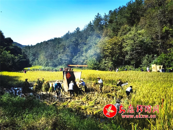本網(wǎng)訊(記者 張喬)9月21日,平利縣西河鎮(zhèn)女媧山村金竹溝原生態(tài)水稻田里熱鬧非凡,飽滿的谷穗壓彎了稻桿,500余畝原生態(tài)水稻將在當(dāng)天開鐮收割,以此慶祝 “豐收節(jié)”的到來。