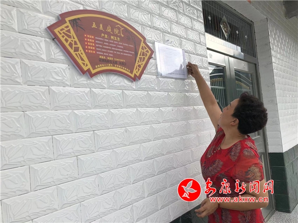 四組宋立琴一大早就拿著大掃帚清掃院落,潔凈的玻璃窗倒映著笑臉,與大門上懸掛著的“五美庭院”相得益彰。環(huán)顧四周,宋立琴周邊農(nóng)戶都懸掛著同樣的“五美庭院”標(biāo)識。
