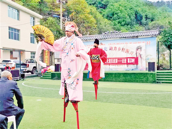 在五峰村,村支部書記羅仁春告訴記者,2023年村委會(huì)牽頭成立了五峰村文化民俗文藝協(xié)會(huì),陸續(xù)加入的48名會(huì)員涵蓋老中青三代,既有傳承高蹺絕技的老人,也有主動(dòng)學(xué)習(xí)弦子腔的年青一代。今年32歲的村民小梅加入?yún)f(xié)會(huì)后,一改往日下班后悶在家中的狀態(tài),每天下午吃完飯都會(huì)下樓和新認(rèn)識(shí)的姐妹載歌載舞,很快就成為舞蹈隊(duì)的主力。“以前不知道我們村上還有文藝協(xié)會(huì),自從村上干部告訴我后,我就趕緊加入了這個(gè)小團(tuán)體,既鍛煉了身體,又愉悅了心情,生活幸福感越來越強(qiáng)烈。”身著舞蹈服的小梅身姿婀娜,水袖飛揚(yáng)間,明媚的笑容如花一樣燦爛。